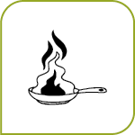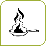 Den eingeschalteten Herd nie unbeaufsichtigt lassen. Brennendes Öl mit Deckel oder Löschdecke löschen – nie mit Wasser! (Fettexplosion)